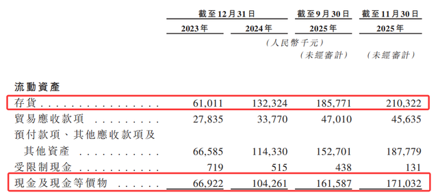 存货规模的快速增长也引发关注。2023年至2025年前9个月,公司存货账面价值从2023年末的6101.1万元增至2025年9月末的1.86亿元,两年内增长超两倍,主要来自外包加工材料和成品。公司表示,存货增加是为满足预期销售增长的主动备货,各期末计提减值准备分别为150.5万元、127.8万元、187.8万元,且几乎所有的存货库龄在一年以内。