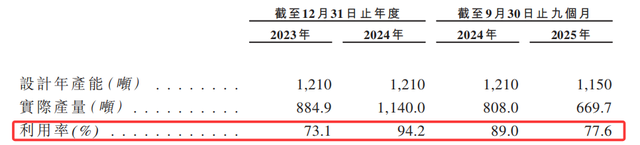 产能利用方面,2025年前9个月,半亩花田的济南原材料加工厂年化产能约1150吨,实际产量669.7吨,年化产能利用率降至77.6%,较2024年的94.2%出现明显下滑,公司称主要因部分生产职能委托外部合作伙伴及部分设备用于产品开发与试产。