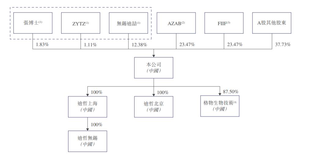 迪哲医药成立于2017年,2021年12月登陆科创板,其前身为阿斯利康全球肿瘤转化科学中心-亚洲创新药物和早期研发中心(iMED Asia),迪哲医药的创始人、董事长、首席执行官张小林曾是iMED Asia的负责人,公司的发起者也包括AstraZeneca AB(简称“AZAB”),AZAB由跨国药企AstraZeneca PLC全资拥有。招股书显示,截至最后实际可行日期,AZAB拥有迪哲医药23.47%的股权。此外,FIIF也持有23.47%,而张小林、ZYTZ、无锡迪哲构成一致行动人,共同持有15.32%。