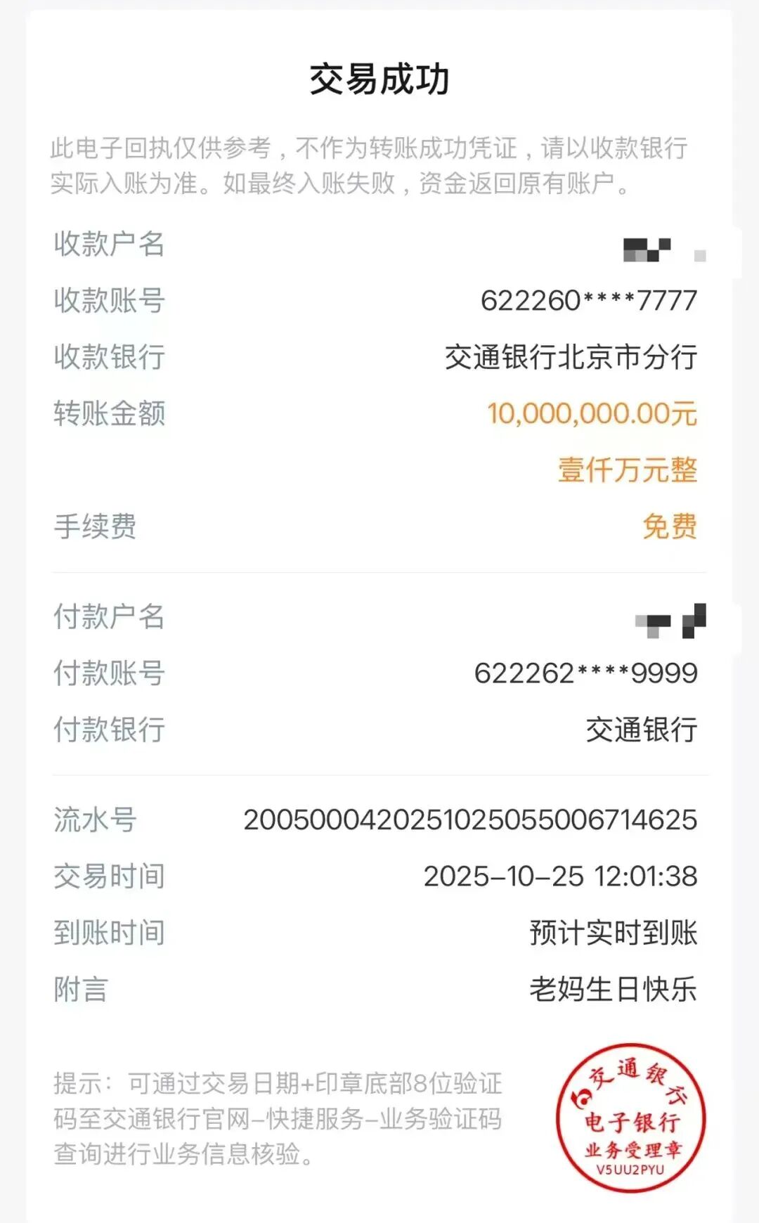 与此同时,其“炫富”朋友圈内容频繁在网络流传:为母亲转账1000万元庆生、佩戴价值约200万元的德国LOTOS眼镜、购入200多万元的奔驰AMG GT63S汽车。