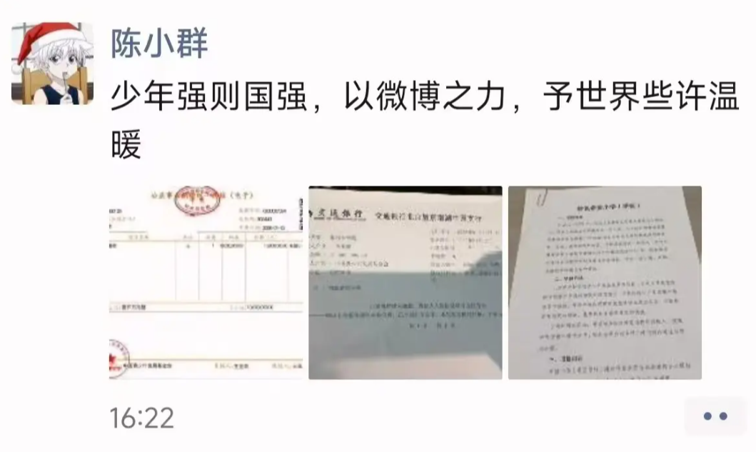 12月10日,“陈小群”发朋友圈表示:“去年算X的说,我去年八月开始,连续四年帝王运。。。验证了一年多,有点靠谱了”。