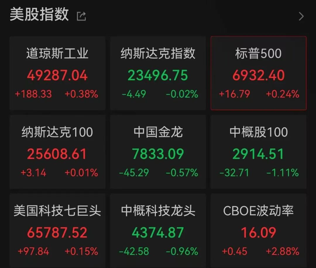 1月26日,美股三大指数开盘涨跌不一,道琼斯指数涨0.38%,标普500指数涨0.24%,纳指微跌。
