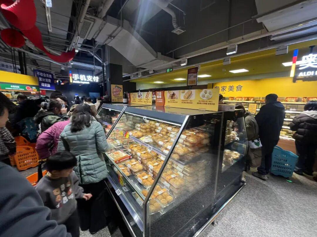 现烤及烘焙产品,现在则是奥乐齐的强项,奥乐齐巧刻广场店烘焙区面积很大,成为了奥乐齐差异花的重要支柱。目前,奥乐齐的品项丰富度已经不输社区面包店了,价格比社区面包店还便宜。整体来说,奥乐齐中国的烘焙业务水平,被认为已经超过奥乐齐全球任何一个国家的烘焙水准了。奥乐齐中国的烘焙是越做越好,越做越强势了。