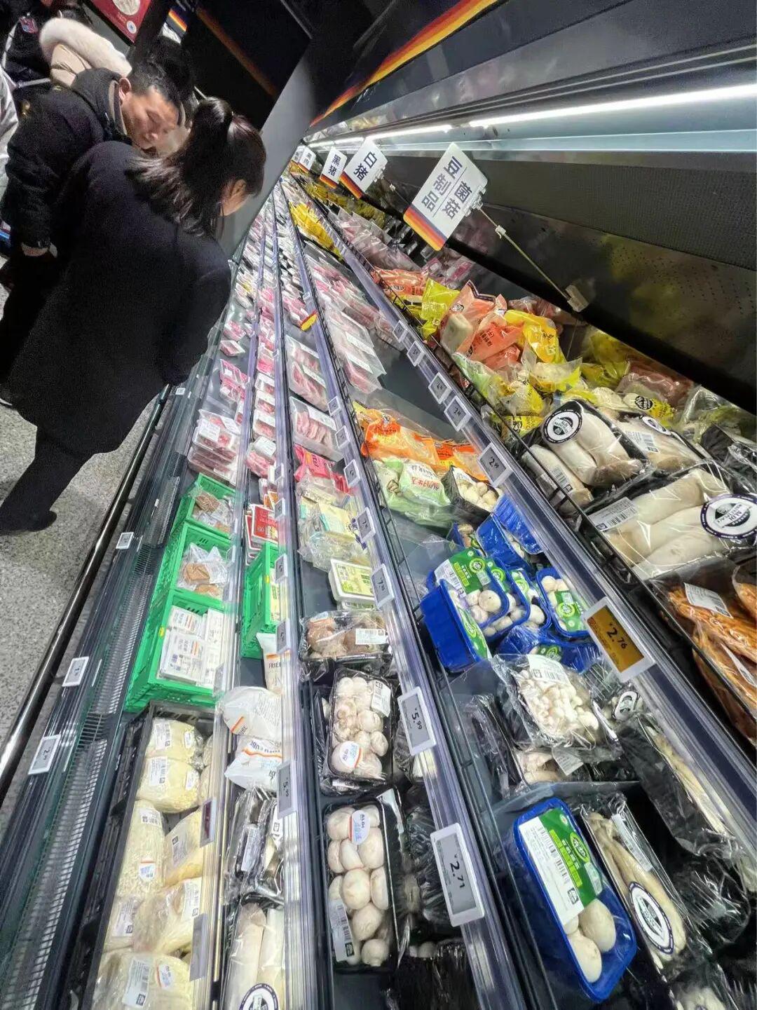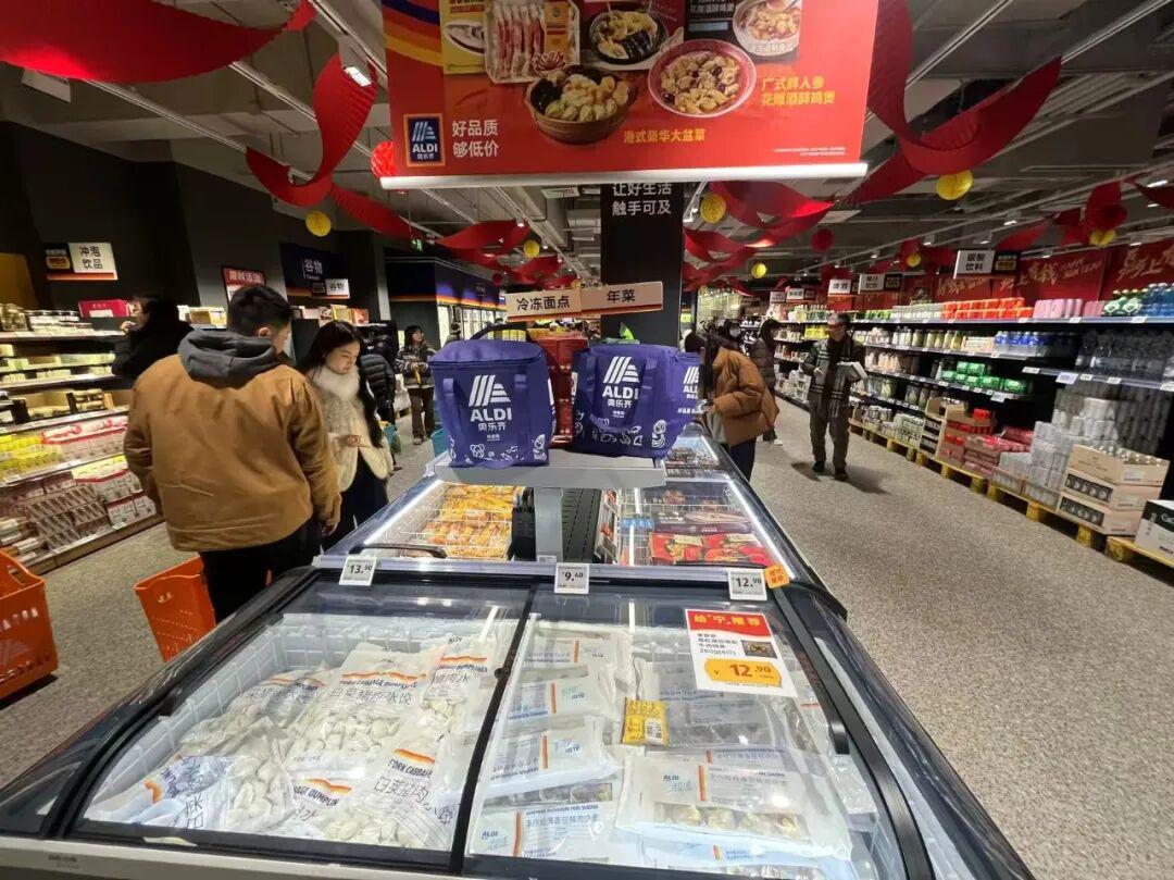奥乐齐南京巧刻广场店冻品区做了12条横式冷柜,8条立式冷柜。