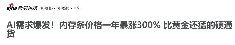 比如DRAM合同价年同比涨约170%,NAND闪存涨近250%。一根主流DDR5内存条,价格从2025下半年到现在翻了三倍!这还没完,TrendForce预测,2026年内存价格还要接着上涨。