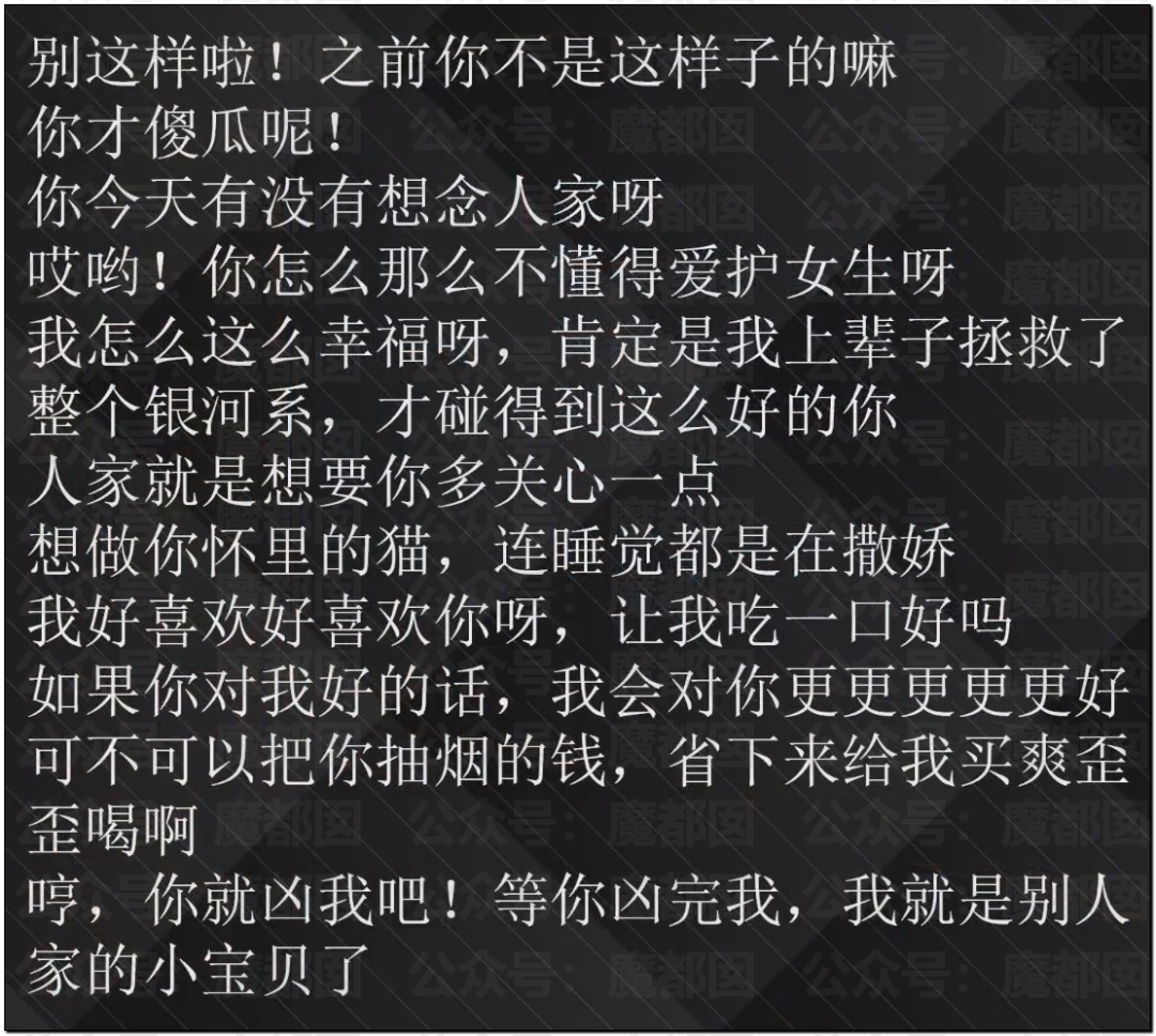 还总结所谓的撒娇语录: