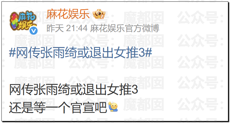 换个话题调整一下心情……昨天写的张雨绮事件还在继续发酵,这个事情可能远比我们想象的严重,她继续退出综艺: