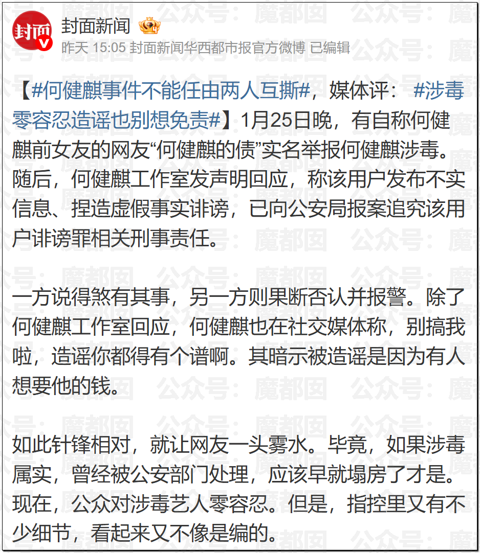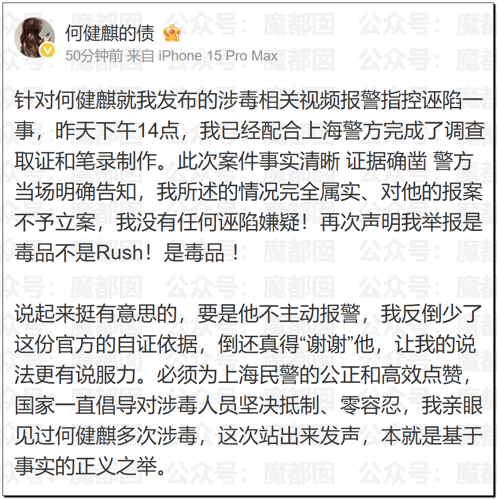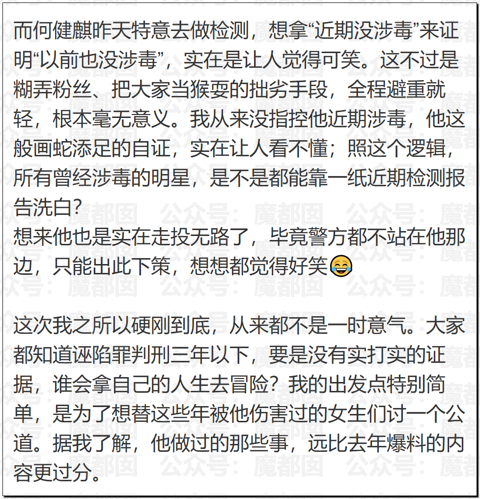 昨天写的那个短剧顶流事件也有后续,很多粉丝和我们讨论,这个人如果搞rush的话可能测不出毒品。我们也是这么认为的,果然后续他去做检测了,何健麒用尿检发检硬核辟谣涉毒传闻,检测结束轻松喊着回家干饭,笑称辟谣耗体力全靠健身兜底..