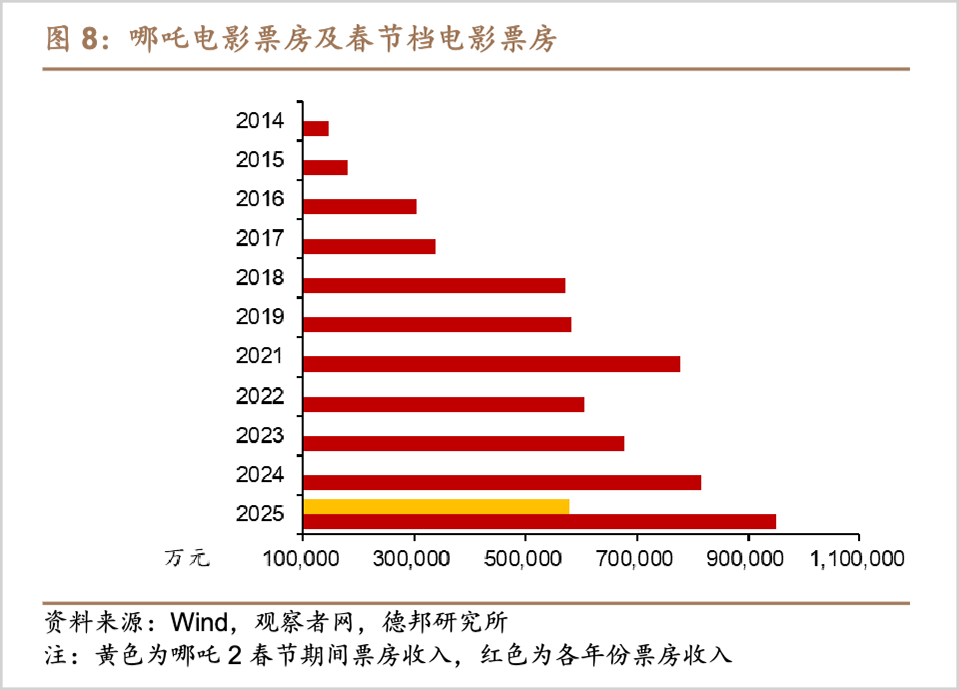 到2025年,更是创下近百亿元的历史新高,尤其是《哪吒之魔童闹海》石破天惊,以狂揽52.24亿元的成绩碾压后者成为该年春节档冠军,总票房更是飙升到154.46亿元,打破中国电影票房纪录,累计成绩更是跻身全球影史前五。