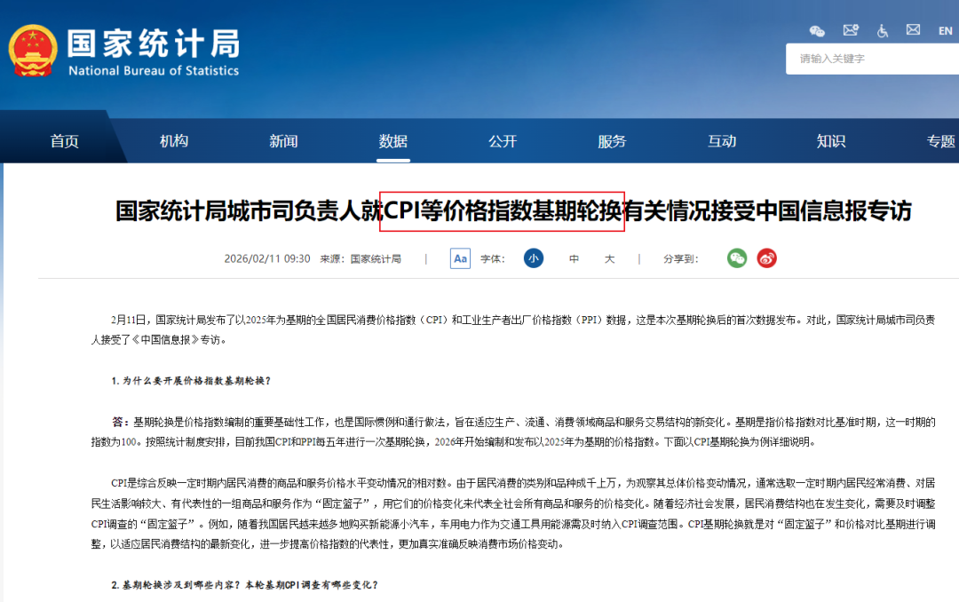 基期轮换是CPI和PPI编制的基础性工作,也符合国际惯例;中国每5年轮换一次,2026年开始编制和发布以2025年为基期的价格指数。