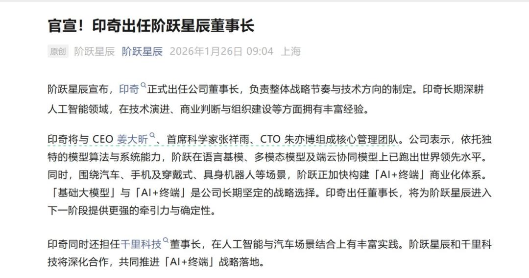 某种意义上讲,如今的阶跃星辰,就是吉利的灵魂。那笔50亿元的融资和印奇的双重身份,构成了吉利控股集团的一份“独立宣言”。它宣告了这家从台州走出的汽车巨头,拒绝在 AI 时代沦为单纯的硬件组装厂。它要用自己的“大脑”,真正掌握自己的命运走向。