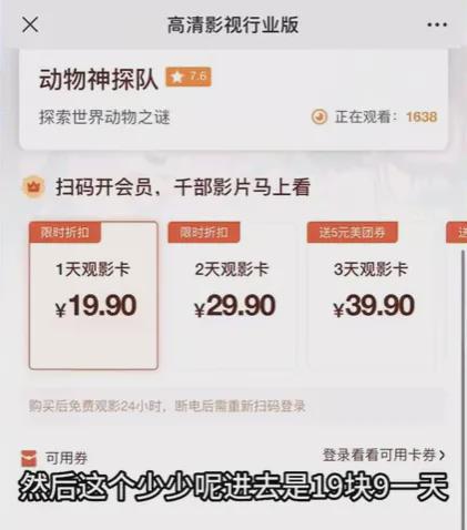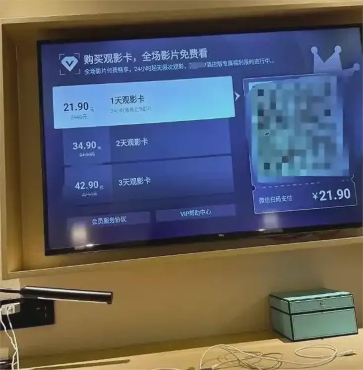 如果你想在上面登自己的视频平台账号,你会发现系统之间完全不互通。酒店的观影卡通常是按天计费,一天的价格能顶上外面一个月的会员费。