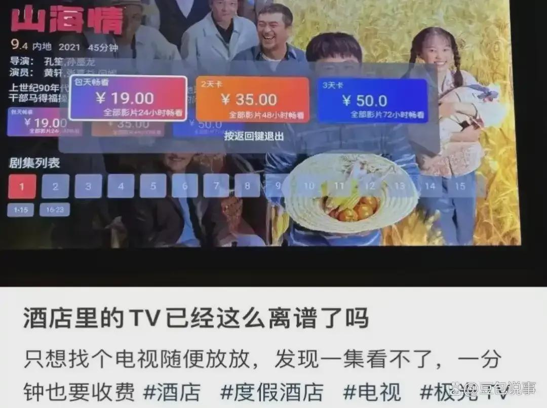 在社交平台上搜索酒店电视,能看到漫山遍野的抱怨,其中出现频率最高的一句话就是看什么都收钱。有人为了体验好一点,特地加钱订了影音房,进去发现里面的资源全是十几年前的老片子,而且还得另外买会员才能看。