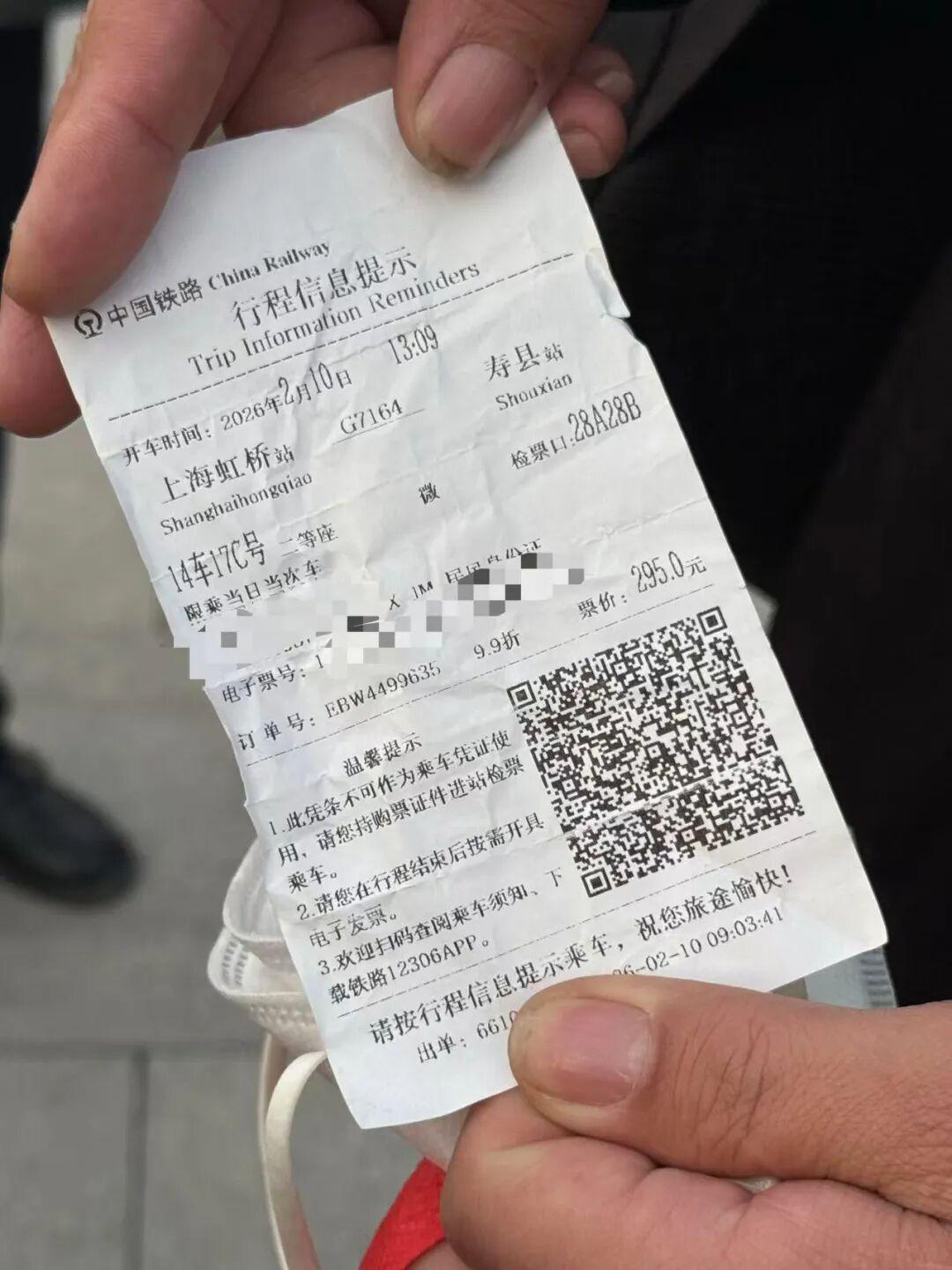 时间空出来了,但抢票没有想象中容易。后来,张华收到老家镇上邮政银行工作人员的信息,在确认返乡后,与他对接的工作人员帮张华订了一张回家的高铁票——G7164。他向《国际金融报》记者展示车票信息,票价295元。