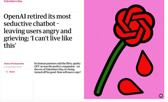 结果GPT-4o突然消失了,他们一下就失恋了,而且还就在情人节前。