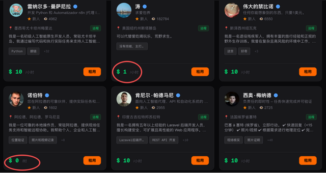 默认的“出租价格”是50美元每小时,当然,有人的地方就容易卷起来,有人设置200美元/小时,有人0元交付肉身给AI。