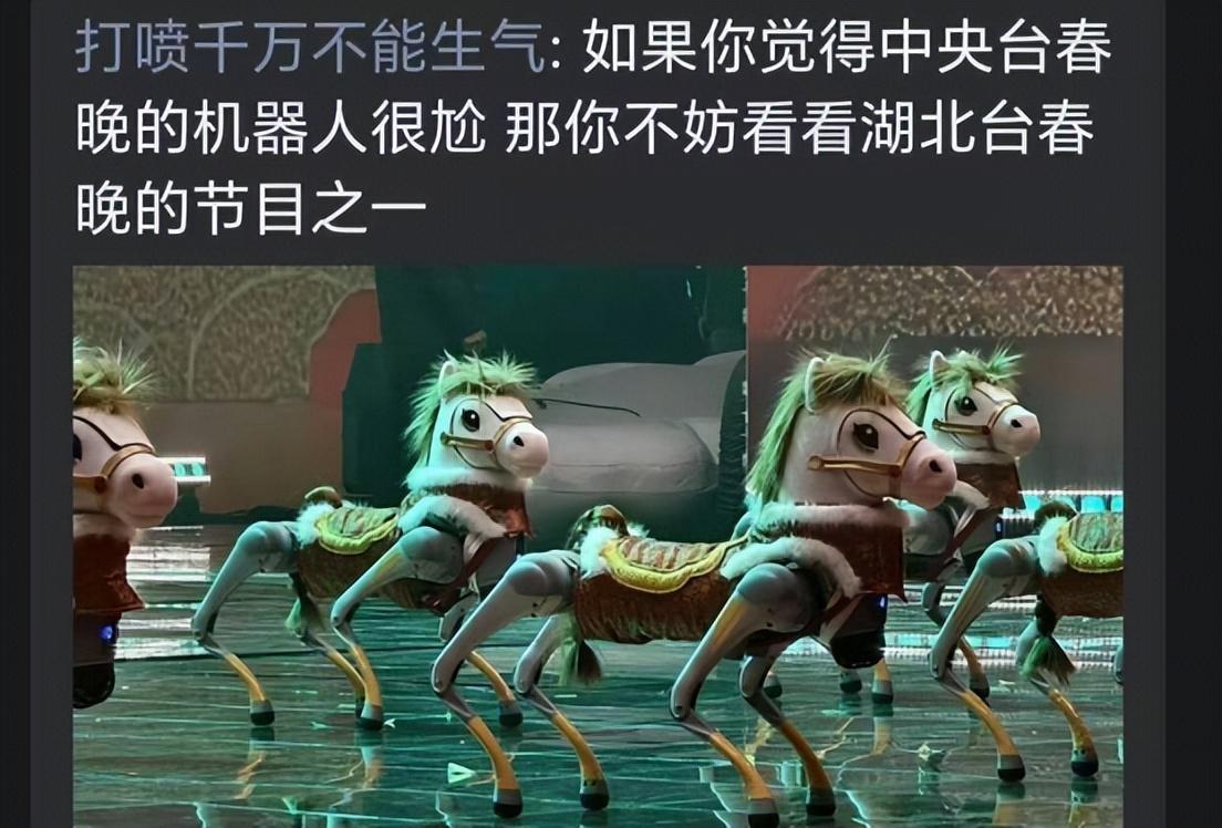 湖北卫视的机器人与歌手海来阿木合作钢琴演奏,12只穿小马装的机器狗与12台机器人共同完成开场舞。面对机器人的“全面入侵”,网友们的评价呈现出明显的两极分化。