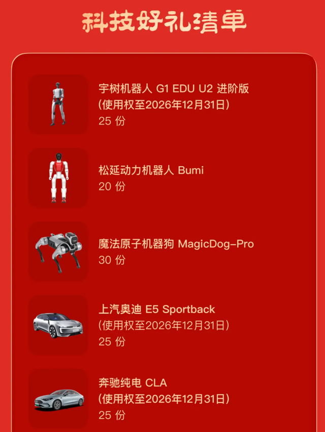 本届春晚,豆包送出17种科技产品,既有机器人、机器狗,也有无人机、3D打印机、智能手表、运动相机、智能手机、电饭煲等智能设备,甚至还有两款新能源车的使用权。这些产品的共同特点就是统统接入了豆包大模型。