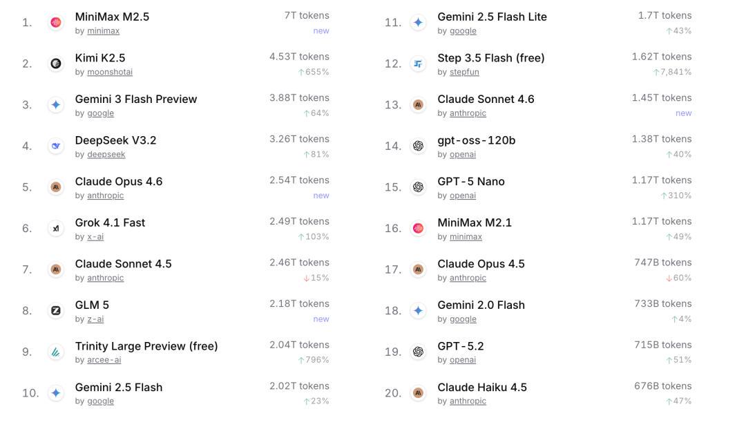 作为个人开发者平台,OpenRouter的数据或许不能说明全部问题,但至少提供了一个在同一标准下的参考样本。