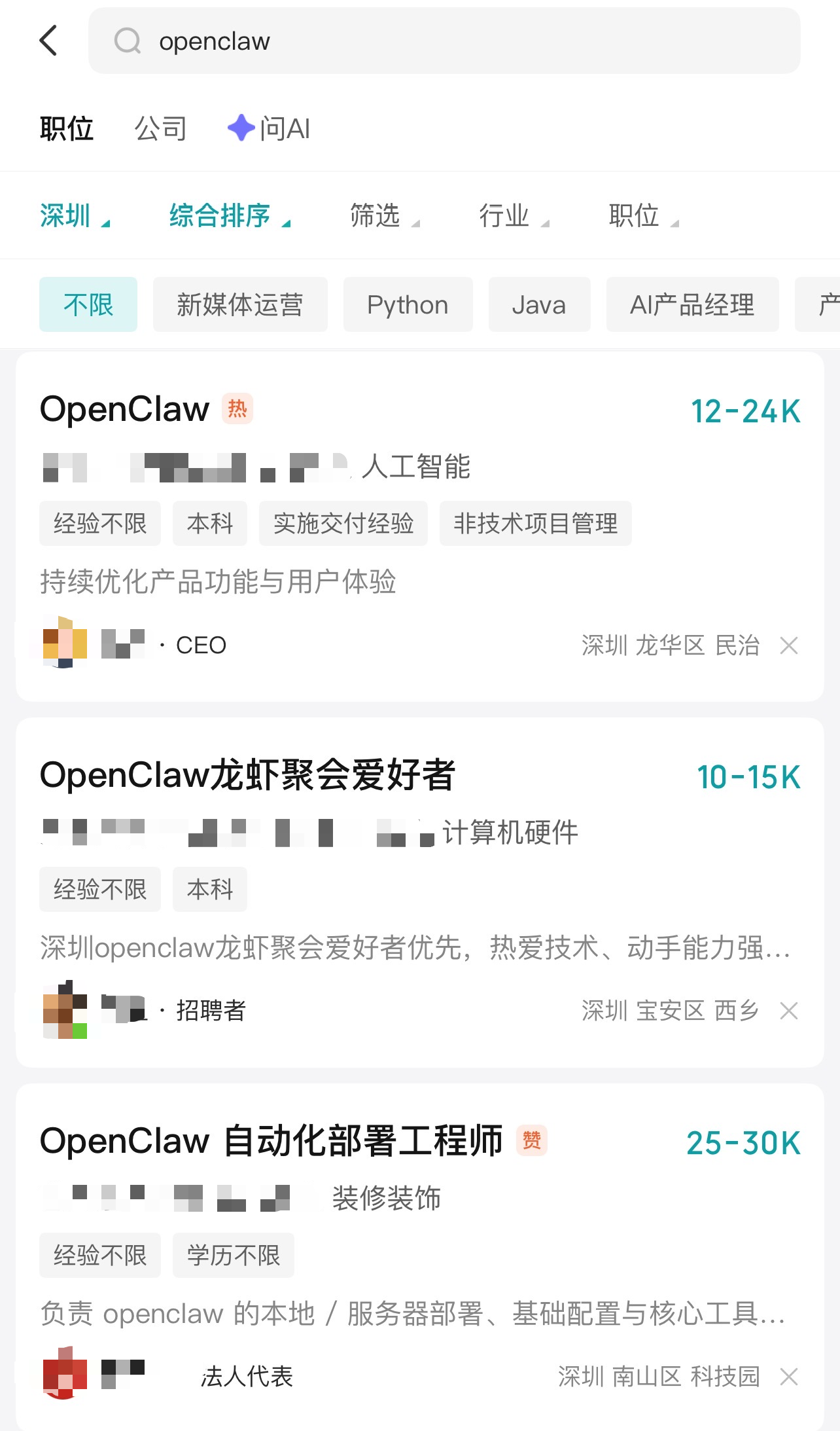 多个企业招聘OpenClaw工程师
