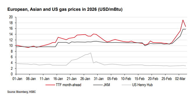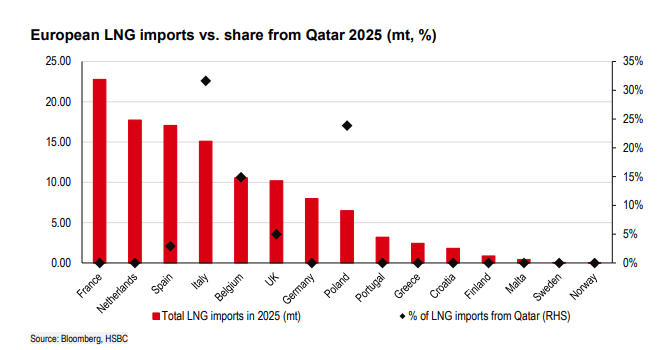 另外,汇丰分析师将欧亚两地的风险性质做出明确区分:欧洲面临的是价格问题,而非实物可得性问题;亚洲面临的则恰恰相反——是实物供应能否保障的问题。摩根士丹利亚太区研究也同步指出,亚洲电力行业对中东LNG的依赖度约达20%,数据中心及电网供应的连续性正面临切实考验,可能被迫转向煤炭等替代能源。