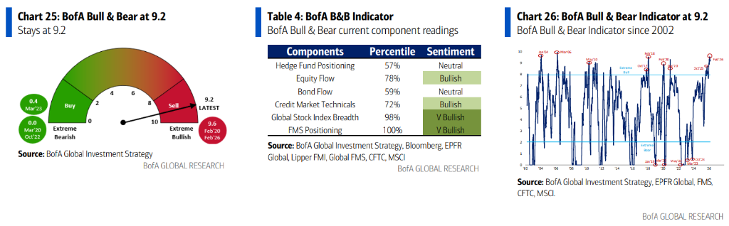 与此同时,美银美林牛熊指标仍高企于9.2的极度看多区间,意味着市场情绪尚未真正降温,反弹空间因此受限。