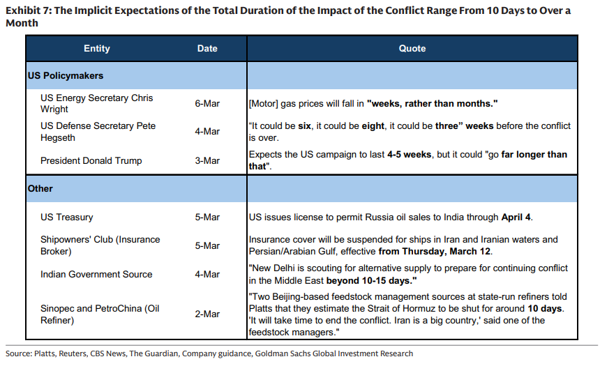 从各方表态来看(见下表),冲突持续时间的预期从10天到超过一个月不等,分歧极大,进一步加剧了市场的不确定性: