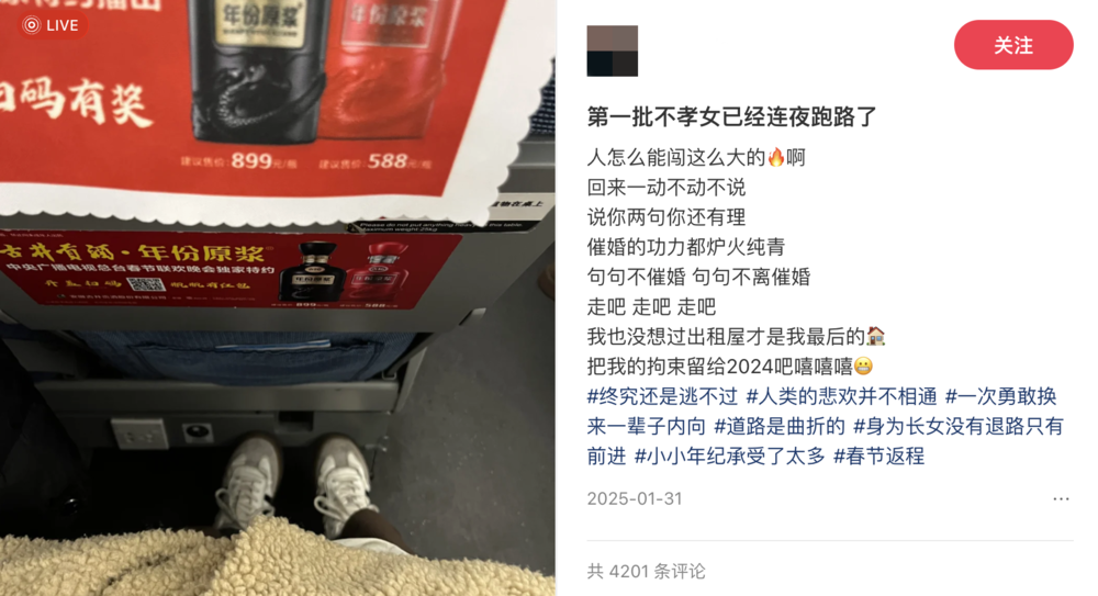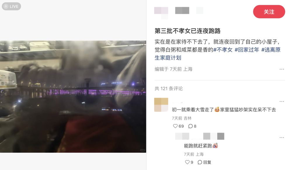 所谓的“不孝女”,其实就是那些在除夕夜或者春节期间选择离开老家的年轻女性。