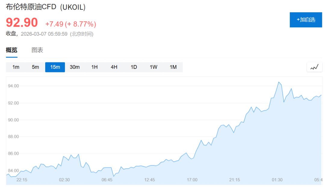 伦敦布伦特原油期货收盘价随之攀升至每桶93美元,创两年多来新高,促使消费国转而寻求替代供应来源,并加剧了全球通胀风险。