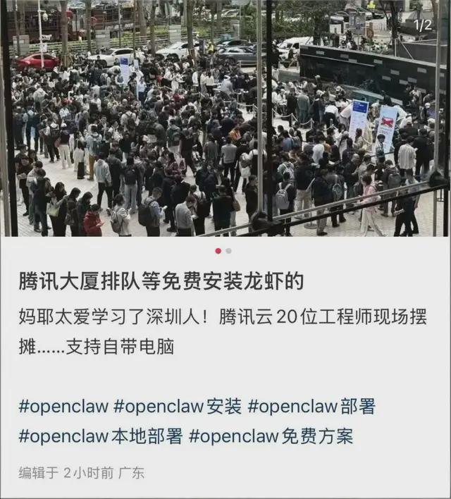 3月6日,深圳腾讯大厦楼下,最近就出现了罕见的排队盛况。几百号人排着长队,不是来领开工利是,也不是来面试,而是来让腾讯程序员免费装“龙虾”。