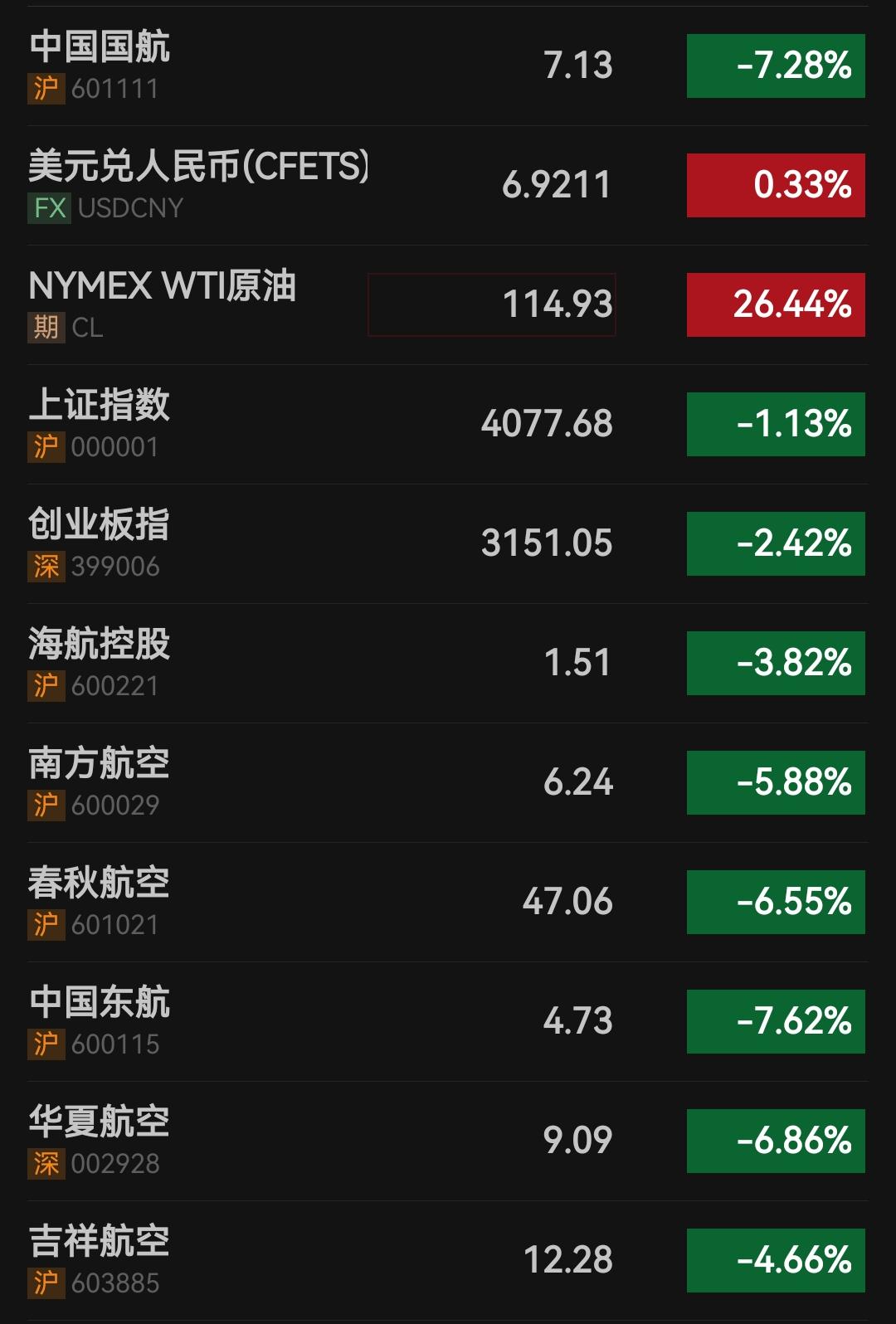 3月9日A股开盘后,航空股全线大跌,截至中午收盘,跌幅最大的超过7%,集体大跌与中东战事和油价暴涨有关。