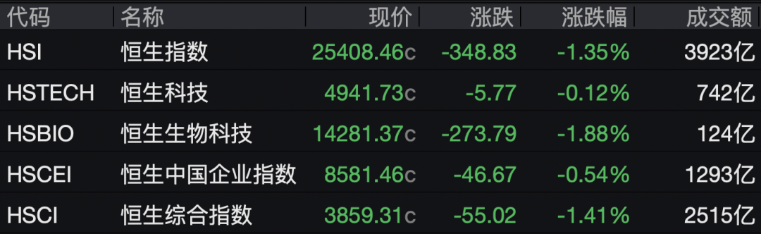 3月9日,恒生指数收跌1.35%,恒生科技指数跌0.12%。