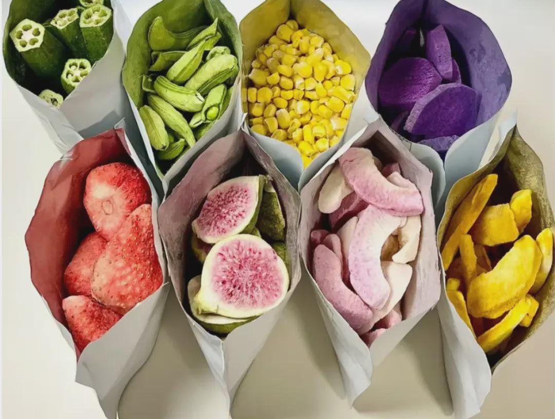 真正的冻干,用的是真空冷冻干燥技术(FD)。这种技术要把果蔬冻到-30℃以下,再在真空环境中让水分直接升华,能最大程度保留营养,而且几乎不含油脂,热量确实低。