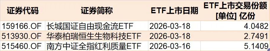 目前有3只ETF披露下周上市,跟踪标的为红利质量、恒生生物科技、自由现金流。