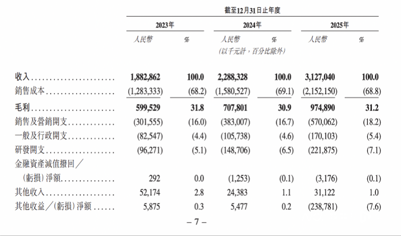行业地位方面,按2024年GMV计算,创想三维在全球消费级3D打印机市场排名第二、3D扫描仪市场稳居第一、激光雕刻机市场位列第三,三大细分赛道均跻身头部,产品矩阵覆盖3D打印全流程,形成硬件+平台的闭环布局。业绩端更是增速亮眼,2023-2025年公司营收分别为18.83亿元、22.88亿元、31.27亿元,三年累计突破70亿元,毛利率稳定在31%左右,盈利韧性较强。