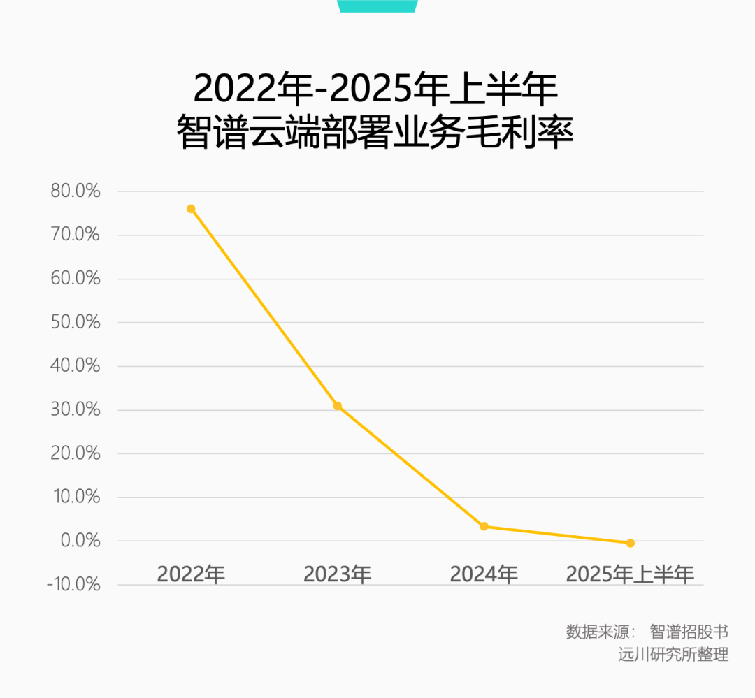 MaaS业务情况更不容乐观,根据智谱招股书,其云端部署业务的毛利率从2022年的76.1%一路下滑到2025年上半年的-0.4%,卖token不如卖白菜。