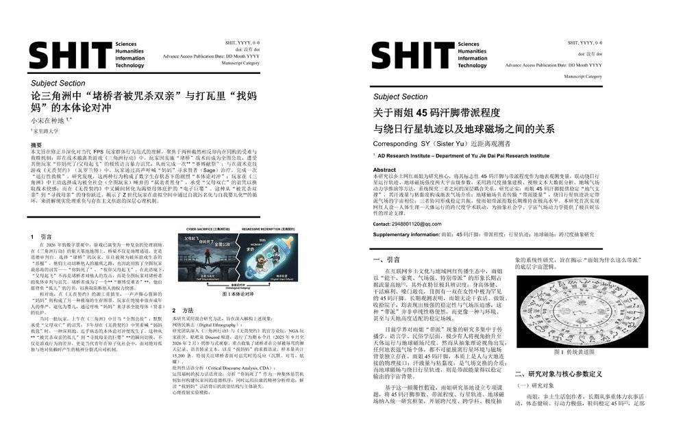 更重要的是,《SHIT》期刊诞生了几篇人文社科学科的旷世雄文,让这次“抽象学术底刊”运动实现了价值意义上的升华,把《SHIT》期刊抬到了本不属于它的高度。