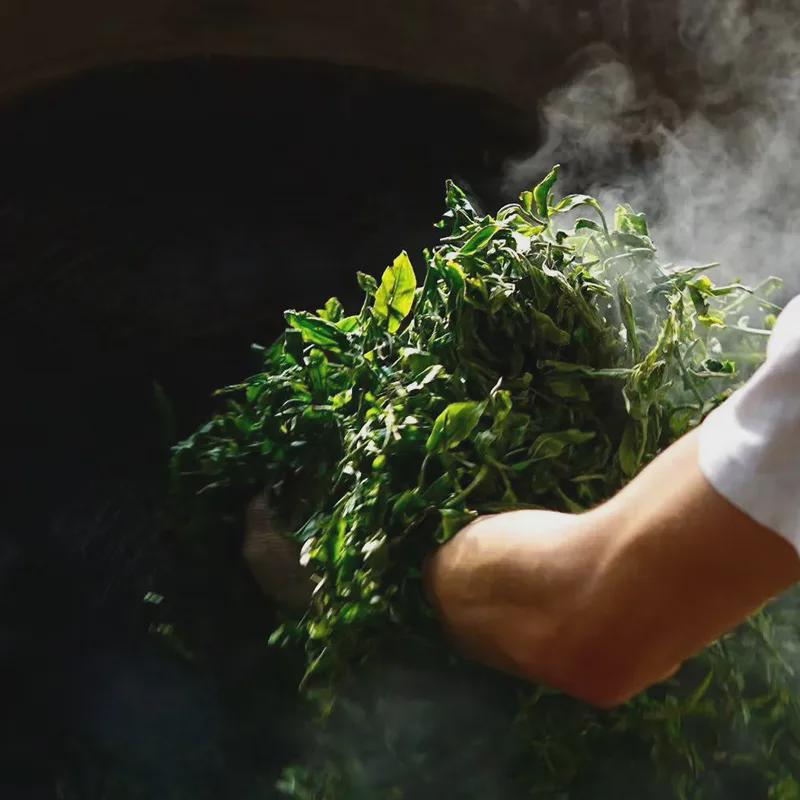 恪守抖、搭、捺、拓等十大传统手法一斤茶需6-8小时全程手工炒制