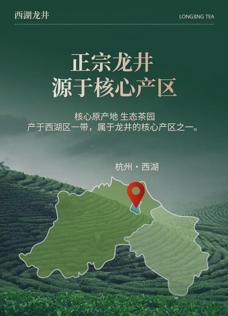 西湖产区是龙井茶唯一的国家地理标志保护核心区,仅 168 平方公里,且分为 “狮、龙、云、虎、梅” 五大核心山头。得天独厚的地理生态环境也是西湖龙井珍贵的主要原因: