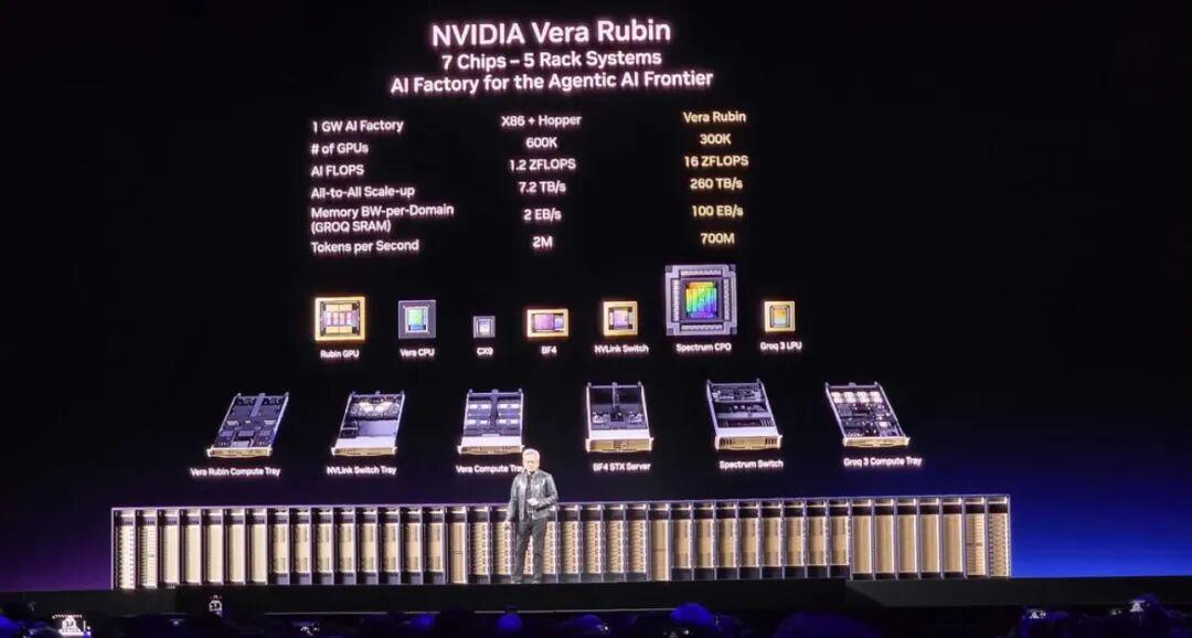 随着这颗芯片的发布,Vera Rubin 成为英伟达迄今为止最具雄心的系统,它由五个机架系统中的七颗芯片组成。英伟达表示,与 x86 和 Hopper 相比,Vera Rubin 每秒可处理 7 亿个token,而后者仅为 200 万个。