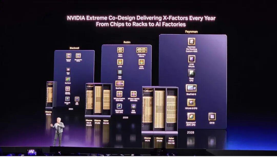 在这次大会上,黄仁勋再次预告了下一代Feynman系统。该系统配备了全新的GPU、LPU、名为Rosa的全新CPU、Bluefield 5以及Kyber架构,并支持铜缆和CPO扩展。Feynman系统预计将于2028年发布。