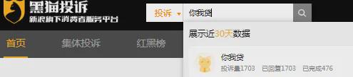 从黑猫投诉平台披露统计看,最近30日,你我贷平台被投诉1703件,已完成476件,投诉内容涉及收取高额费用、担保费太坑、暴力催收、恶意扣费、不提供合同单号等。