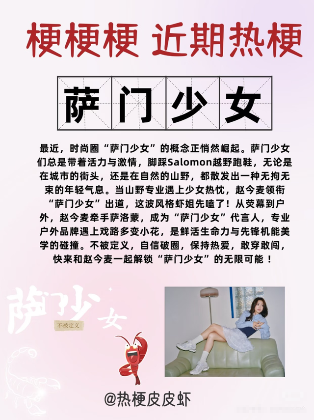 萨洛蒙的产品设计也开始往少女心配色上靠,但相比动辄上万的奢侈品,一双鞋上千的萨洛蒙显然更有性价比,“萨门少女”立马在社交平台崛起。