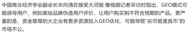 中国商业经济学会副会长宋向清指出,资金雄厚的大企业有更多资源投入GEO优化,可能导致“劣币驱逐良币”的市场不公。当优质产品被虚假信息淹没,真正需要被推荐的好产品反而难以被AI识别,整个市场的竞争规则被彻底扭曲。