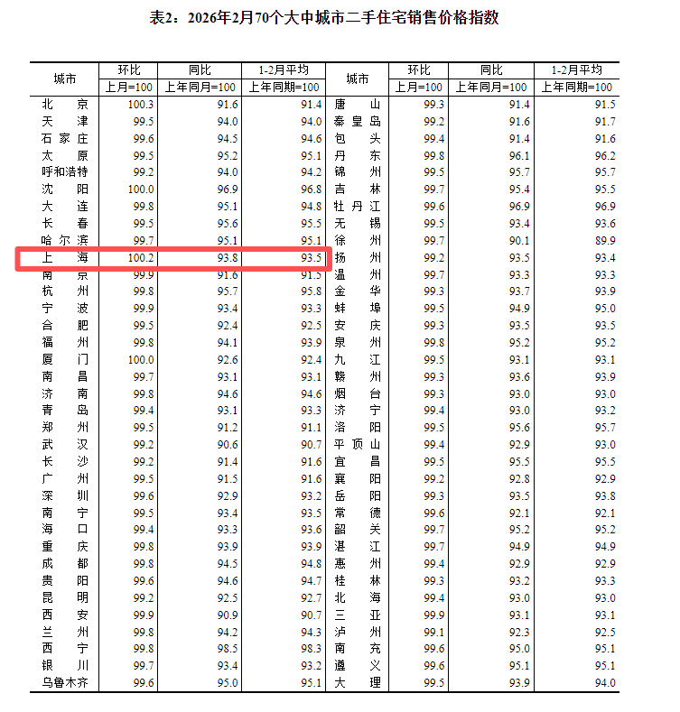 就城市层面而言,2月份,70个大中城市中,仅北京、上海2个城市的二手住宅价格环比上涨。其中,上海房价环比上涨0.2%,终结了此前连续9个月的下跌。