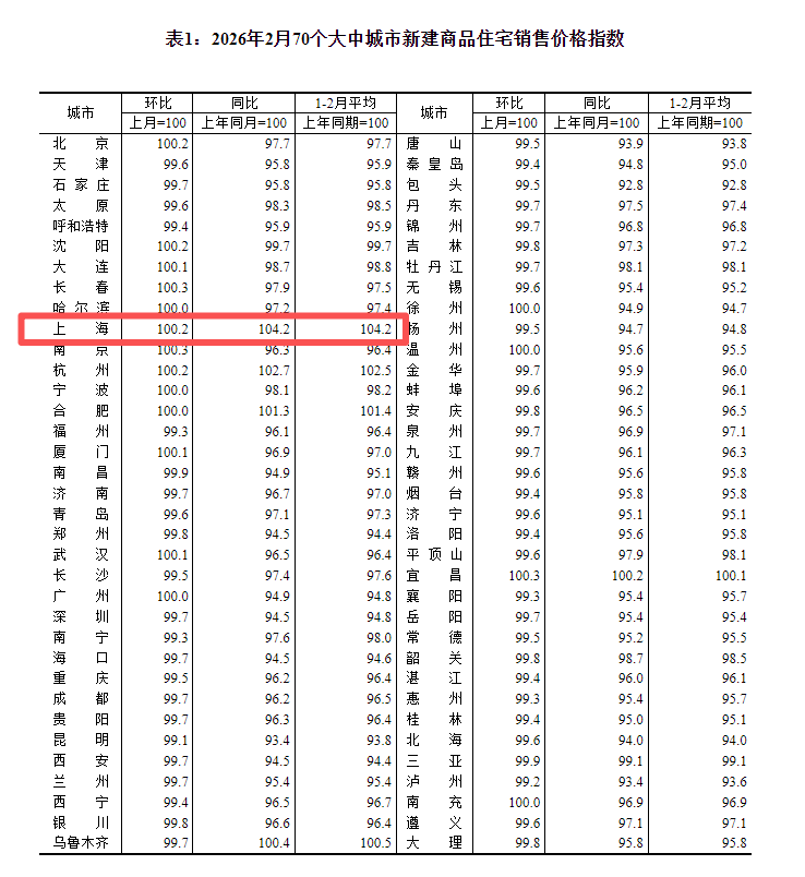3月16日,国家统计局公布2026年1—2月份全国房地产市场基本情况及2月份70个大中城市商品住宅销售价格变动情况。