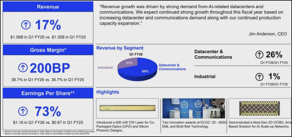 图1:海外龙头Coherent业绩与扩产侧验证AI驱动下的数据中心与通信高景气