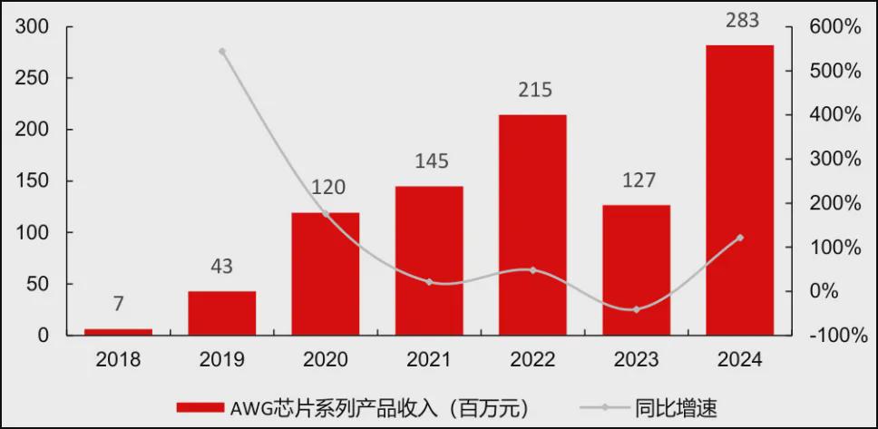 图:仕佳光子AWG芯片收入在2024年明显反弹