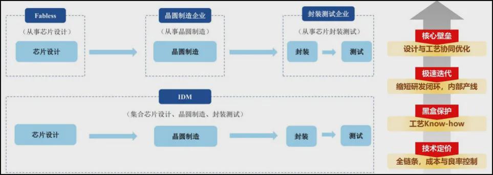 图:IDM模式的壁垒在设计、工艺、良率和成本的闭环协同能力。