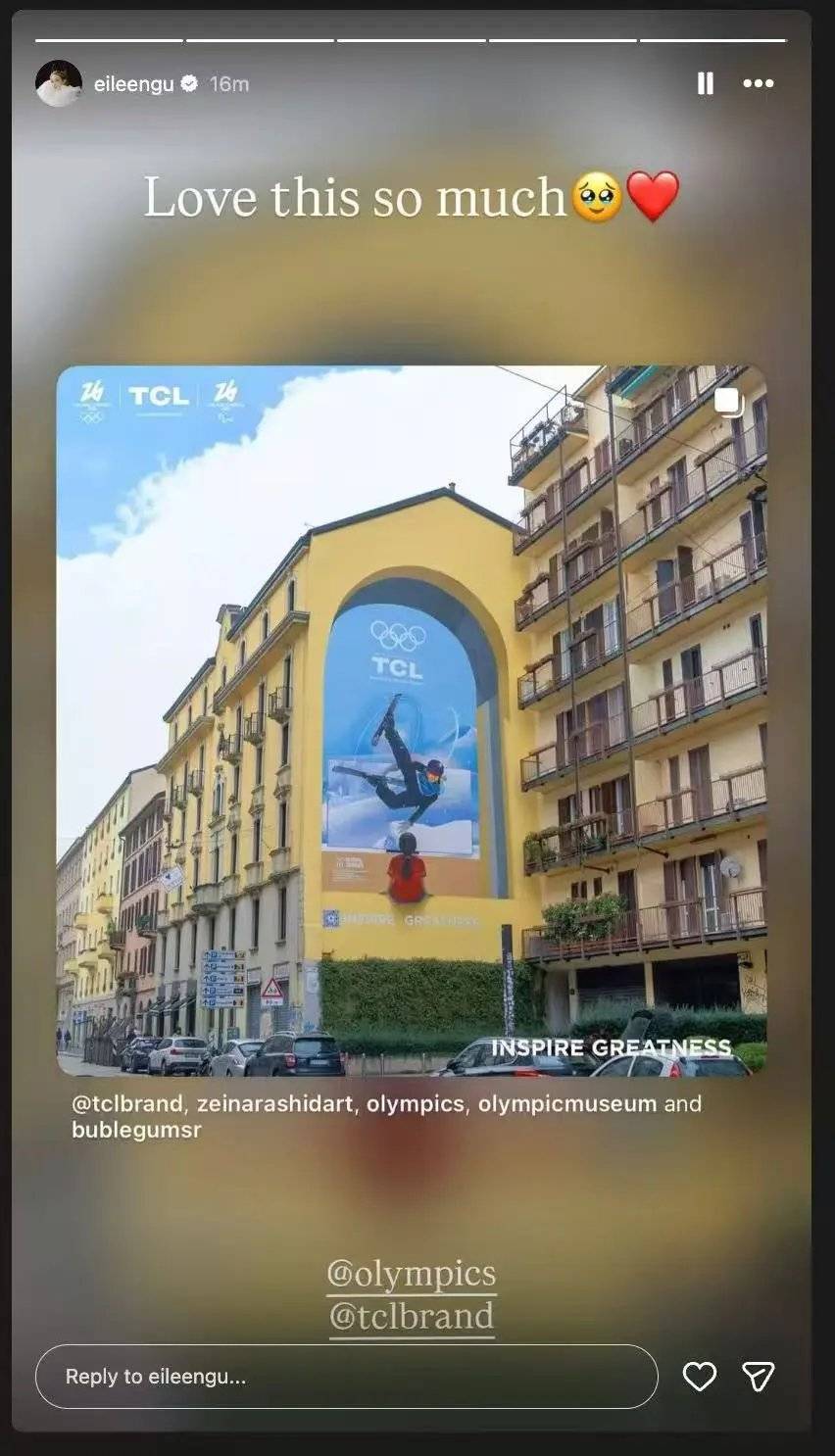 米兰户外创意壁画,由TCL与国际奥委会奥林匹克文化与遗产基金会共创,获谷爱凌IG点赞